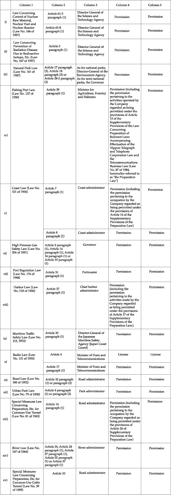 Provisions of the Law Concerning Nippon Telegraph and Telephone Corporation,