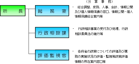 • (分掌事務)各府省の政策についての評価及び業務の実施状況の評価・監視等政策評価情報の所在案内窓口等