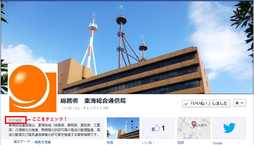 Facebook 東海総合通信局の公式フェイスブック画面のトップイメージ