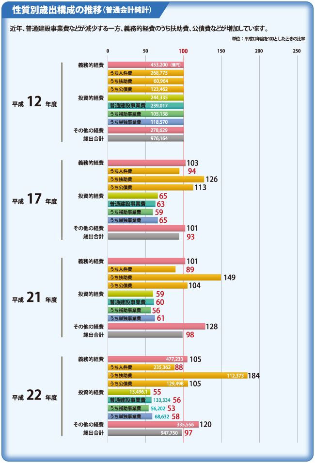 | *普通建設事業費 | 道路、橋りょう、公園、学校等の社会資本の整備に要する費用をいいます。 |