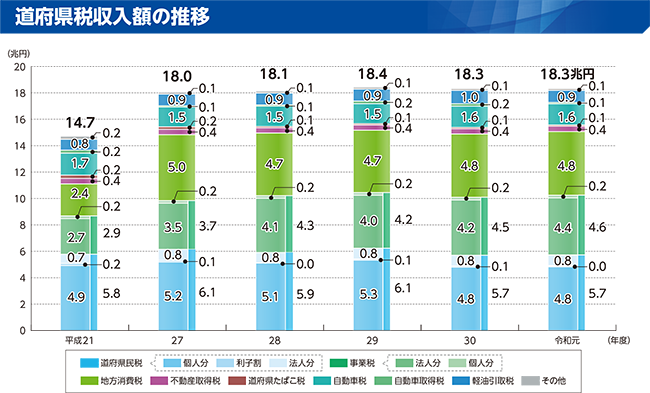 地域のニーズに応じた行政サービスを自らの責任と判断で実施できるよう、税源の偏在度が小さく税収の安定性を備えた地方税体系を構築することが必要です。