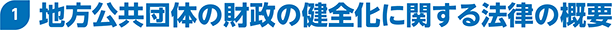 旧来の地方公共団体の財政再建制度では分かりやすい財政情報の開示や早期是正機能がない等の問題が指摘されていたため、新たな指標の整備とその開示の徹底、財政の早期健全化や再生を図る「地方公共団体の財政の健全化に関する法律」が平成21年4月に全面施行されています。