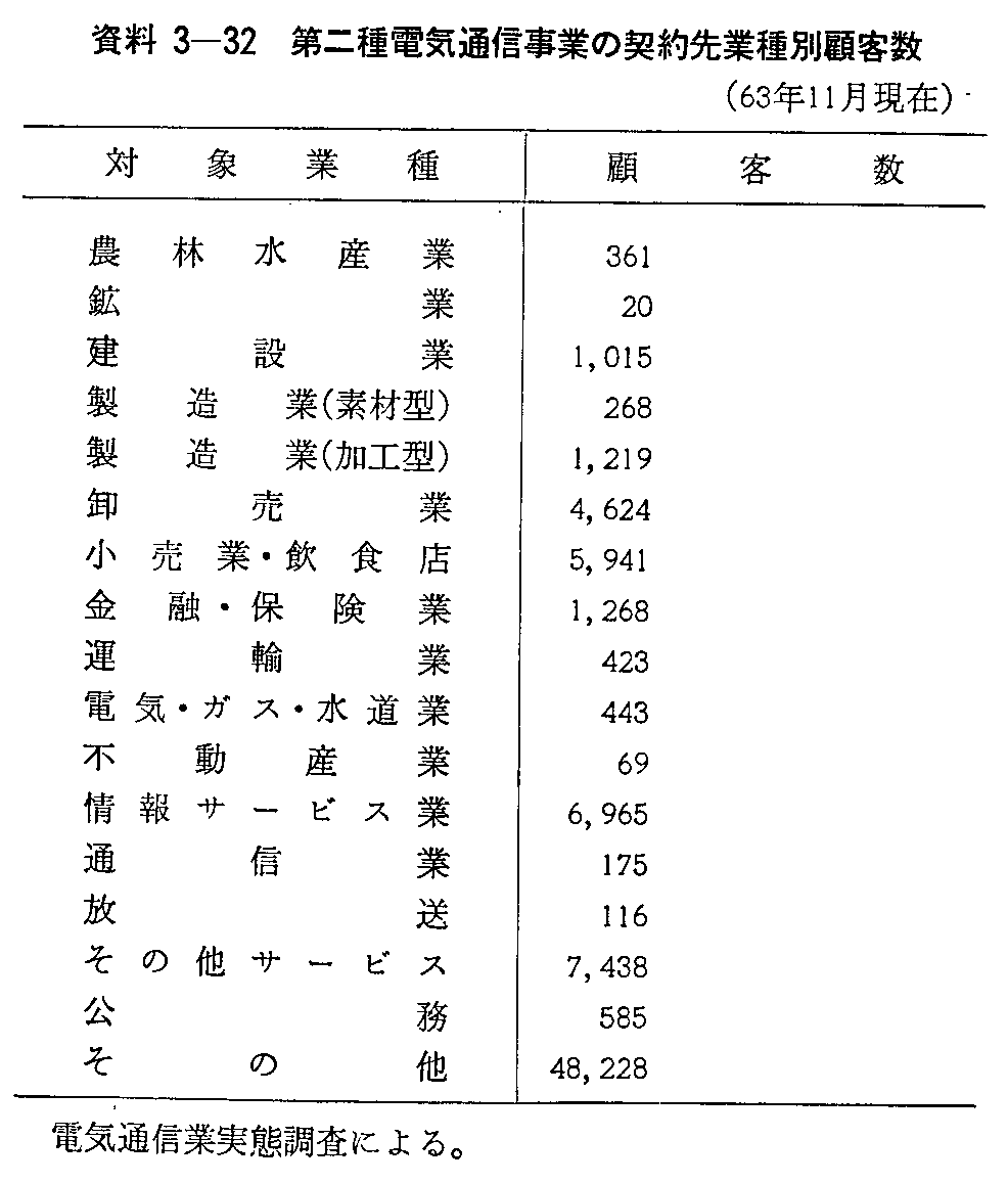 資料3-32 第二種電気通信事業の契約先業種別顧客数