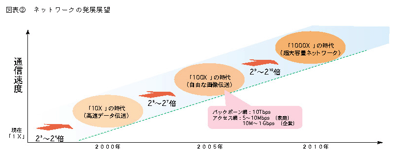 郵政省では、21世紀初頭の次世代ネットワーク像及びそのネットワーク上で展開されるアプリケーション、コンテンツ、プロダクツを展望するとともに、高速・低料金の次世代ネットワーク基盤の構築、提供される新サービスの実現のための環境整備及びそれらの推進方策について検討を行うため、11年1月より「次世代ネットワーク構想に関する懇談会」を開催し、同年6月に報告書を取りまとめた。同報告書の概要は以下のとおりである。