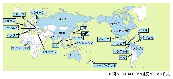 ![]() 図表4) 主要国の第3世代携帯電話サービスの実施状況