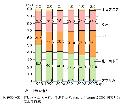 ![]() 図表[3] 世界のインターネット地域別利用者比率の推移