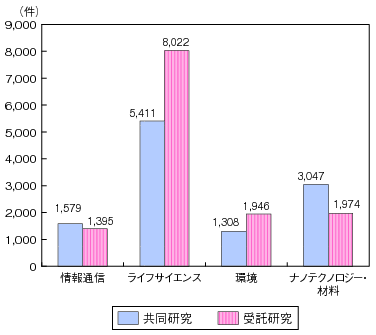 3 受託研究:大学等が国や民間企業等からの委託により、主として大学等のみが研究開発を行い、「共同研究」同様、相手方からそのための研究経費が大学等に対し支弁されているものとし、経費が大学等に支弁されないものは除外している。