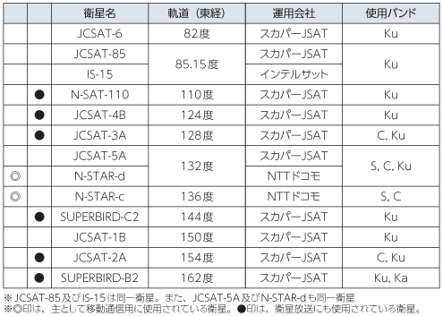 通信衛星には、静止衛星及び周回衛星があり、広域性、同報性、耐災害性等の特長を生かして、企業内回線、地上回線の利用が困難な山間地・離島との通信、船舶・航空機等に対する移動通信サービスのほか、非常災害時の通信手段確保等に活用されている。なお、通信衛星には、CS放送に用いられるものもある。