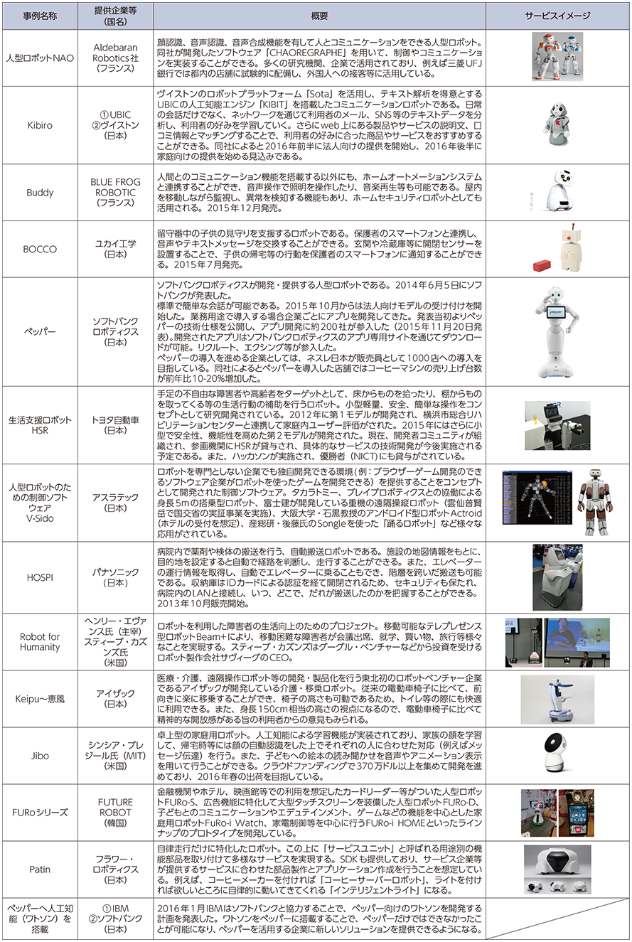 サービスロボットの例をまとめたものが下記の表である(図表3-1-5-2)。