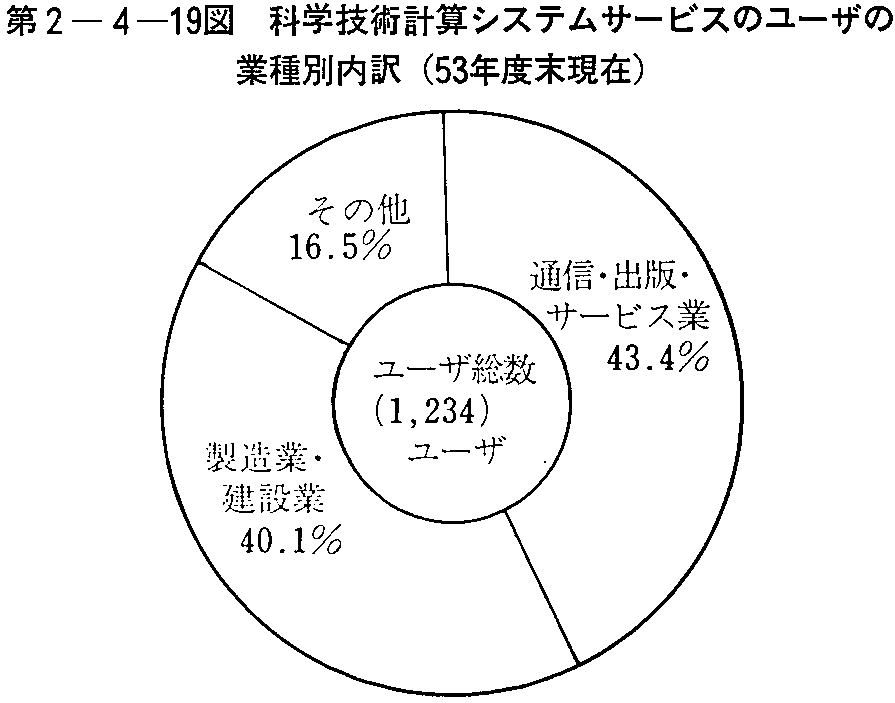 科学技術計算システムサービスは,高度な技術計算や経営科学計算ができる我が国初の商用TSSとして,46年3月東京で開始されて以来順調な伸びを示し,53年度末現在においてユーザ数1,234,端末数1,486となっている。