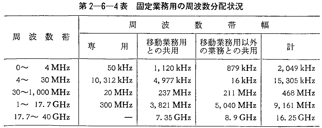 固定業務に分配されている周波数帯は,第2-6-4表に示すとおりである。