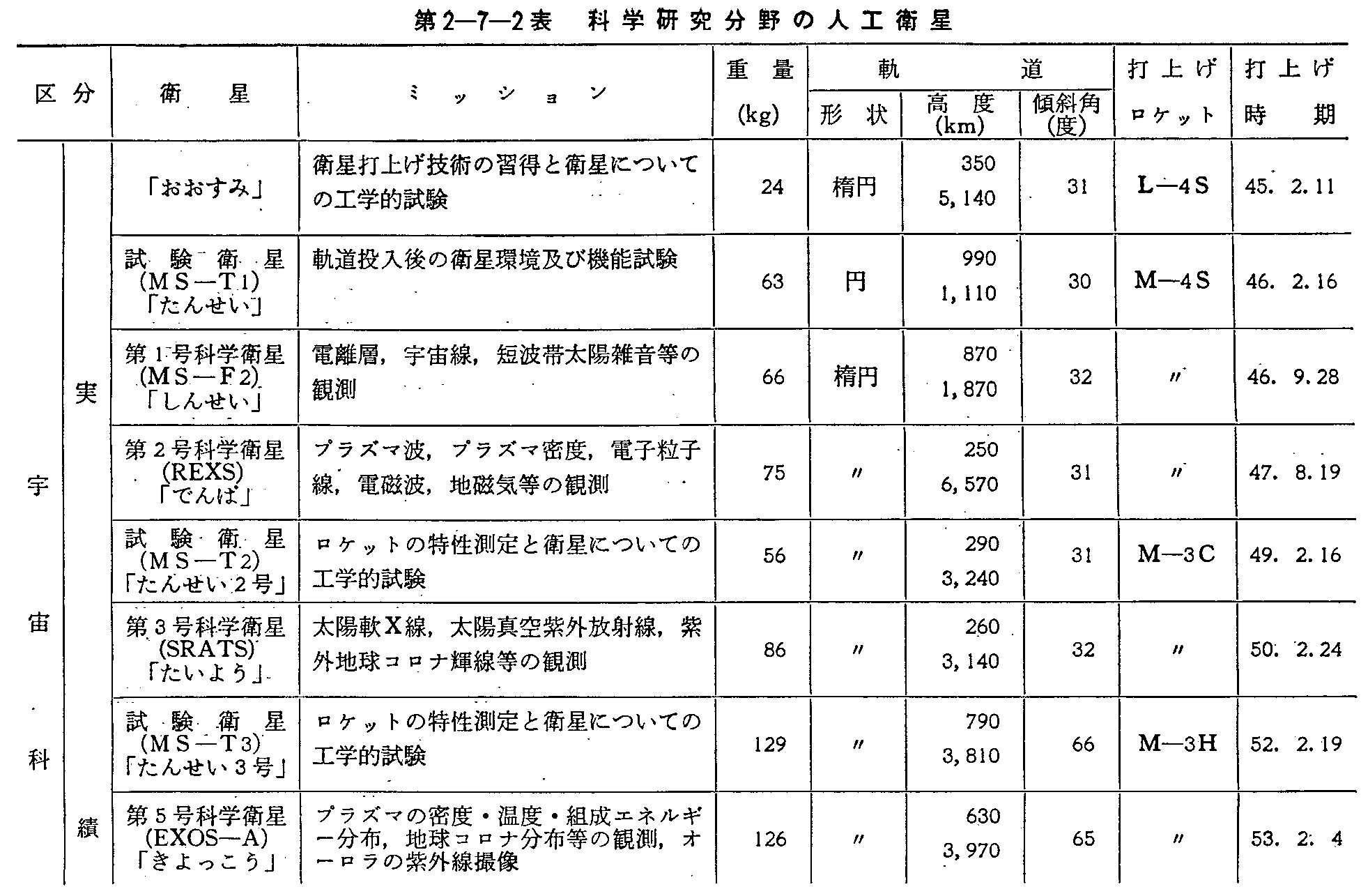 これらの衛星は,同事業団,気象庁,郵政省電波研究所,電電公社及びNHKによりそれぞれ運用されており,人工衛星の開発,打上げ,利用に関する基礎技術の習得等においてほぼ所期の成果をあげている。