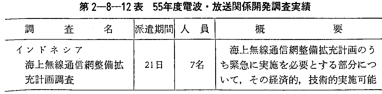 これらの調査は,ラジオ放送網整備計画,テレビジョン放送局建設計画,沿岸無線網拡充計画等について,それぞれ,事前調査,フィージビリティ調査,基本設計,実施設計等を行ったものである。
