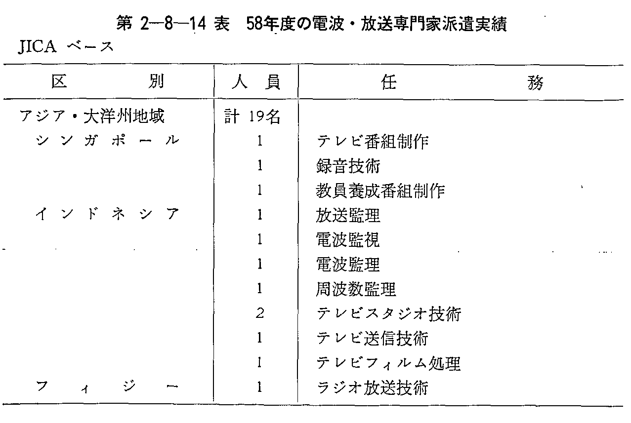 58年度の電波・放送専門家派遣実績については,前年度からの継続分を含めて,第2―8―14表のとおりである。