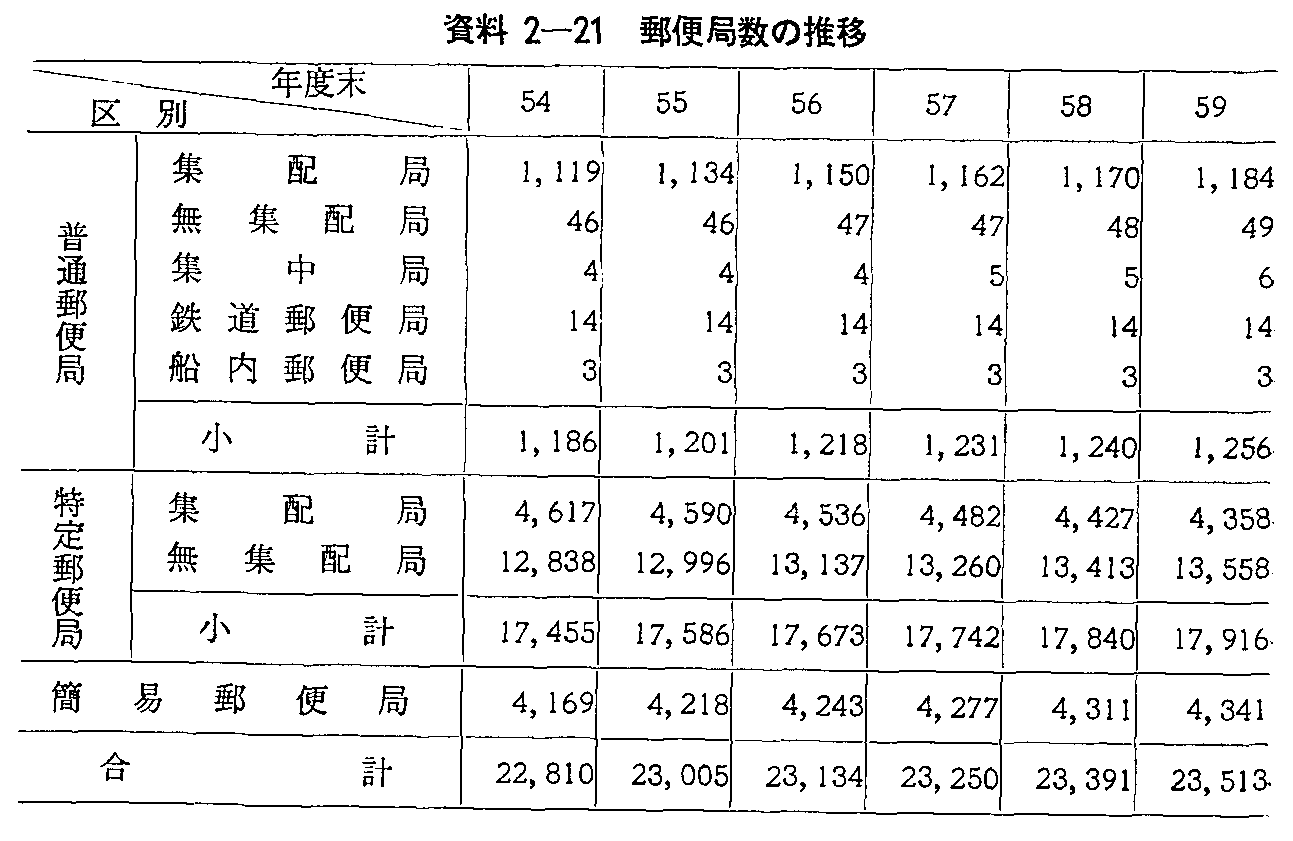 特定郵便局の局舎についても,59年度において463局が改善された。