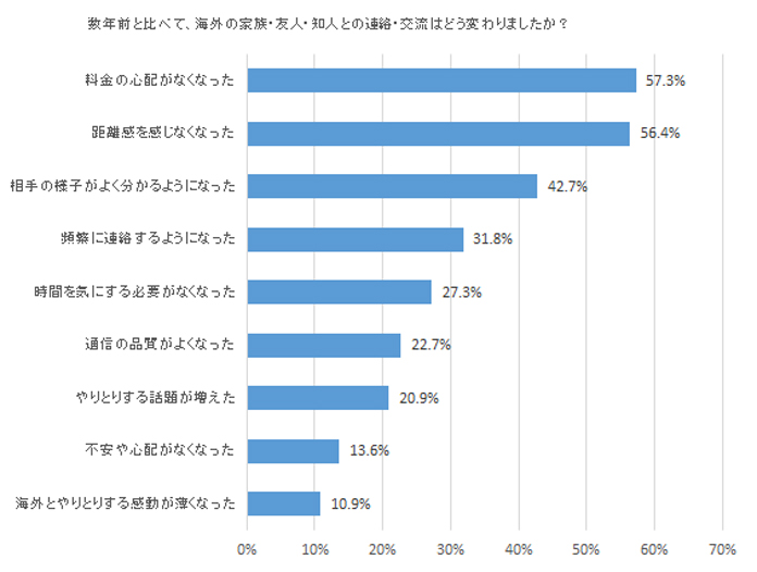 数年前(スマートフォンが普及する前)と比べて、海外の家族・友人・知人との連絡・交流はどのように変わりましたか?(複数回答可)