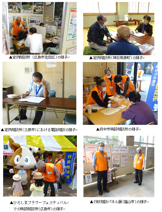 行政相談委員は、無報酬のボランティアとして、国民の皆様から、国などの行政に関する苦情や意見・要望などを受け付け、相談者への助言や関係行政機関への通知などを行っており、国民の皆様の身近な相談相手となっています