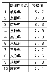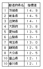 これらの三つの指標を合計したのが総合指標であり、岐阜県、大阪府、京都府の順に情報化が進んでいる(第2−7−50図参照)。