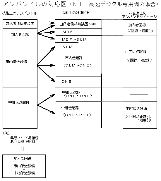 アンバンドルの対応図(NTT高速デジタル専用網の場合)