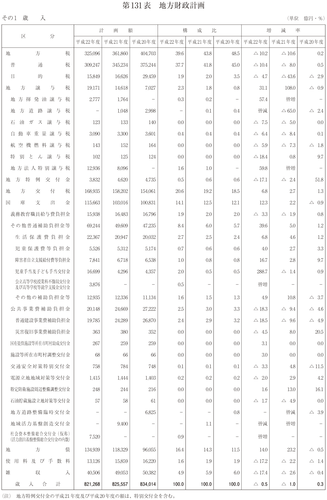 第134表 主要経済指標及び地方財政計画等の推移 [Excel]