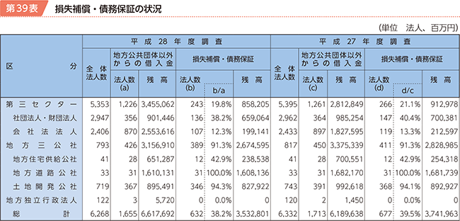 経営状況等調査対象法人の損失補償・債務保証の状況は、第39表のとおりである。