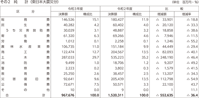 第129表 目的別歳出決算額の状況