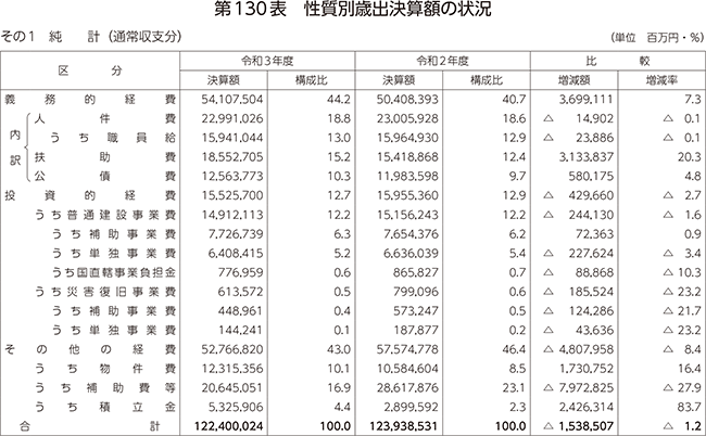 第130表 性質別歳出決算額の状況