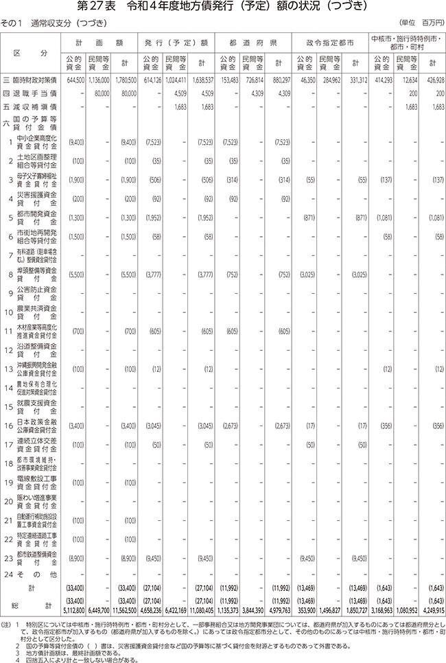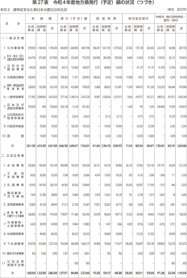 第27表 令和4年度地方債発行(予定)額の状況
