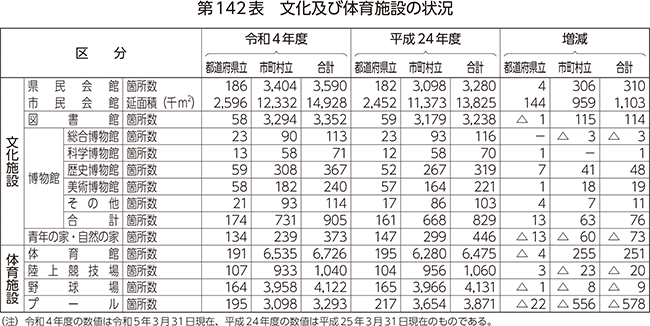 第139表 下水道等の状況、し尿及びごみ処理施設の状況
