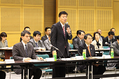 挨拶する新藤総務大臣(高橋北海道知事・鈴木夕張市長との意見交換会)