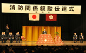 第20回危険業務従事者叙勲伝達式で受章者代表謝辞を受ける新藤総務大臣