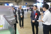 日本企業のブース展示を視察する古川総務大臣政務官(右)
