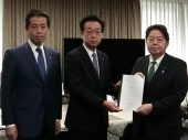 要望書を受け取る林総務大臣