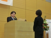 永年勤続表彰式典にて表彰状を授与する林総務大臣