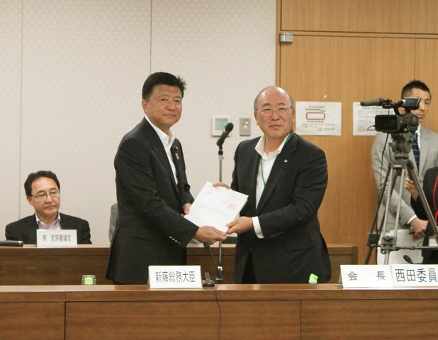 答申後挨拶をする新藤総務大臣