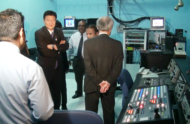 モルディブ国営放送局にて説明を受ける新藤総務大臣