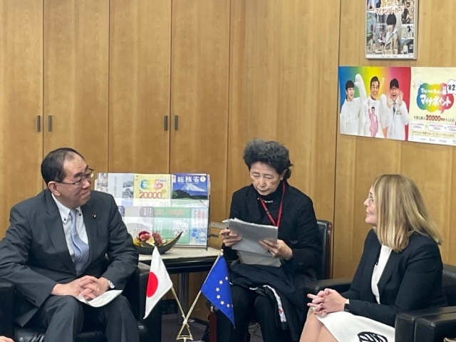 令和5年5月17日、松本総務大臣は、欧州議会域内市場・消費者保護委員会(IMCO)代表団の訪問を受けました。