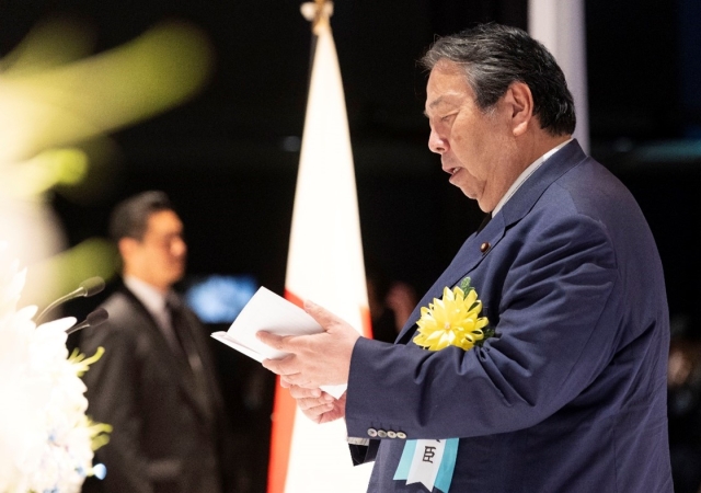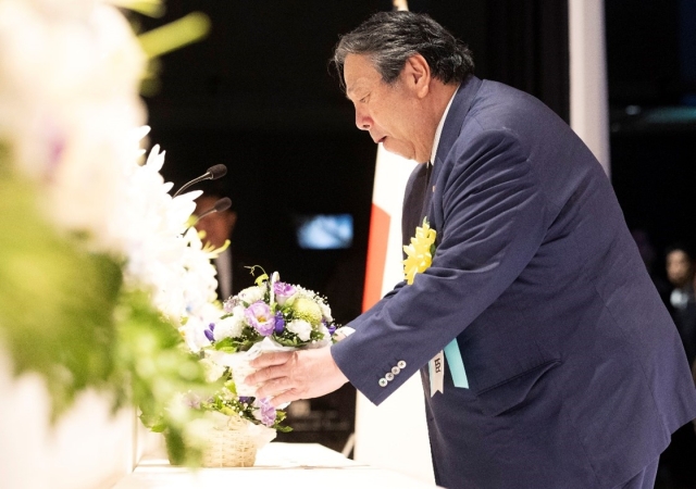 慰霊祭の様子(中央から右側に、石破内閣総理大臣、村上総務大臣、鳩山内閣府副大臣〔坂井防災担当大臣代理〕)