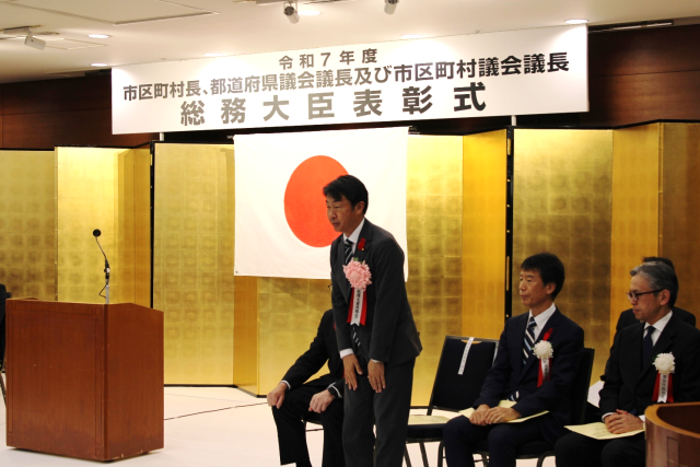 令和7年10月3日、「令和7年度市区町村長、都道府県議会議長及び市区町村議会議長総務大臣表彰式」が挙行され、古川総務大臣政務官が出席しました。