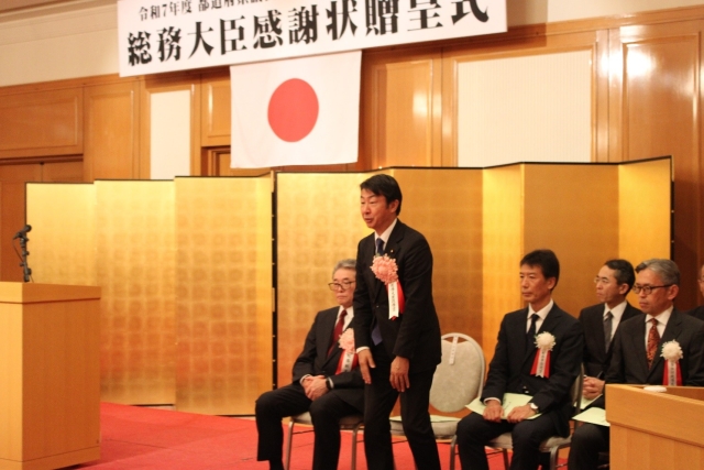 令和7年10月20日、「令和7年度都道府県議会議員及び市区町村議会議員総務大臣感謝状贈呈式」が挙行され、古川総務大臣政務官が出席しました。