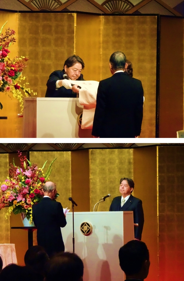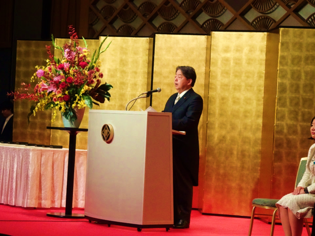 伝達式には、総務省所管分野における169名の受章者とその配偶者が出席され、林総務大臣は、式辞を述べ、勲章及び勲記を伝達した後、受章者代表から謝辞を受けました。