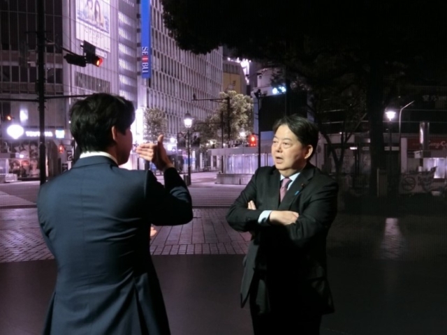 大型LEDディスプレイにカメラと連動するCG画像を投影するVPスタジオでは、天候や季節に影響を受けずにロケ地にいるかのように撮影でき、林総務大臣は、技術担当者から、背景画像の作成手法や広がる映像表現について説明を受け、人材育成の必要性などについて意見交換しました。