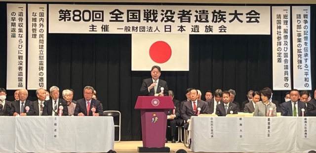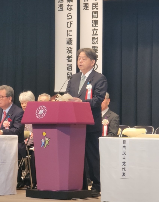 林総務大臣は、来賓挨拶において、日本遺族会の献身的な活動に敬意を表するとともに、戦没者の御遺族に対する恩給を堅持し、御遺族の生活を支えていく旨の挨拶を行いました。