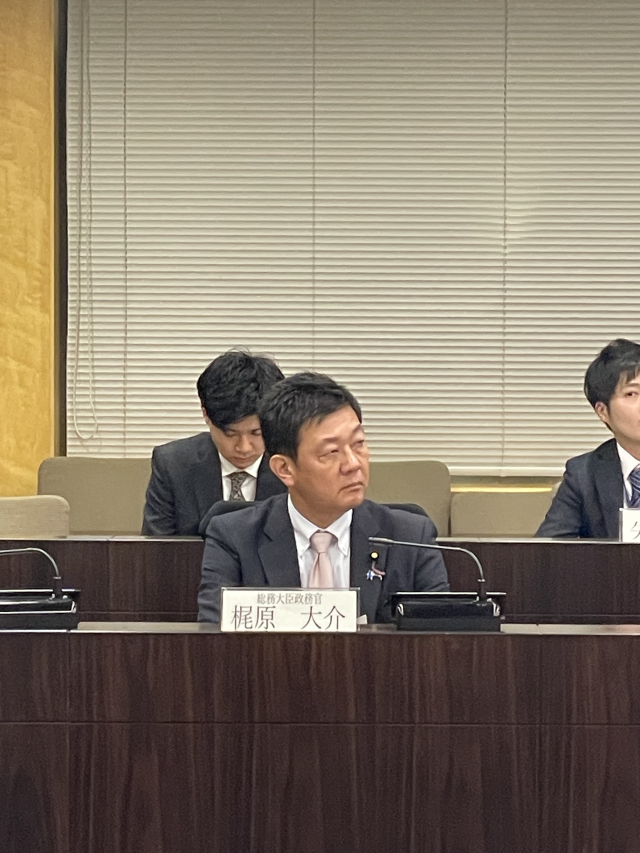省議に参加する梶原総務大臣政務官