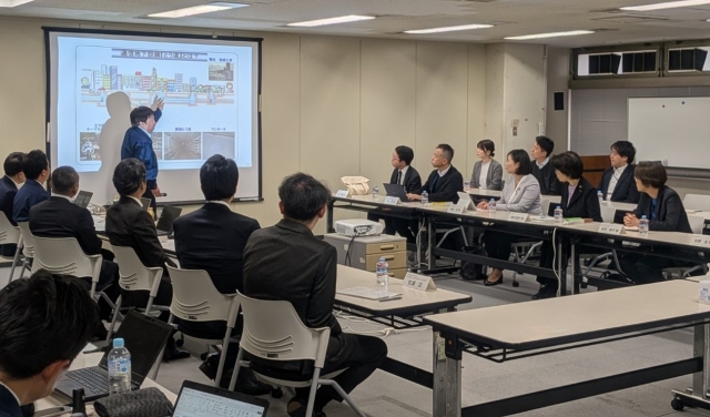 NTT東日本から通信設備に係る説明を受け、意見交換を行う向山総務大臣政務官