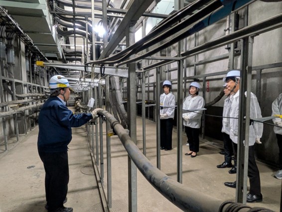 とう道(ケーブルの収容と保守作業空間の確保を目的として地中に構築された設備)を視察する向山総務大臣政務官