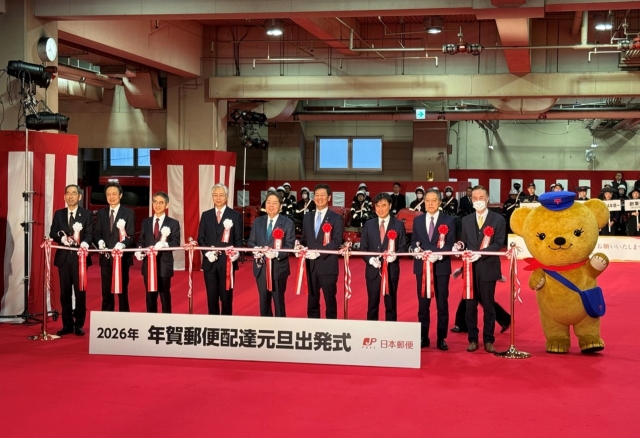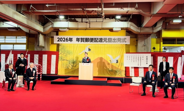 令和8年1月1日、梶原総務大臣政務官は、林総務大臣とともに新宿郵便局で行われた「2026年 年賀郵便配達元旦出発式」に出席しました。