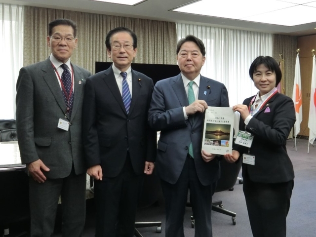 要望書を受け取る林総務大臣