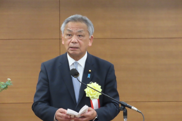祝辞では、自治功労表彰者の長年にわたる活躍と功績に敬意を表すとともに、地方税財源の確保、地域の活性化、消防防災力の充実強化など、活力ある地域づくりの実現等に向け、町村長の皆様方と十分な意思疎通を図りながら、政策を推進し、地域の発展に取り組んでいく旨を述べました。