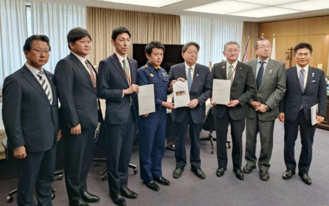 要望書を受け取る林総務大臣
